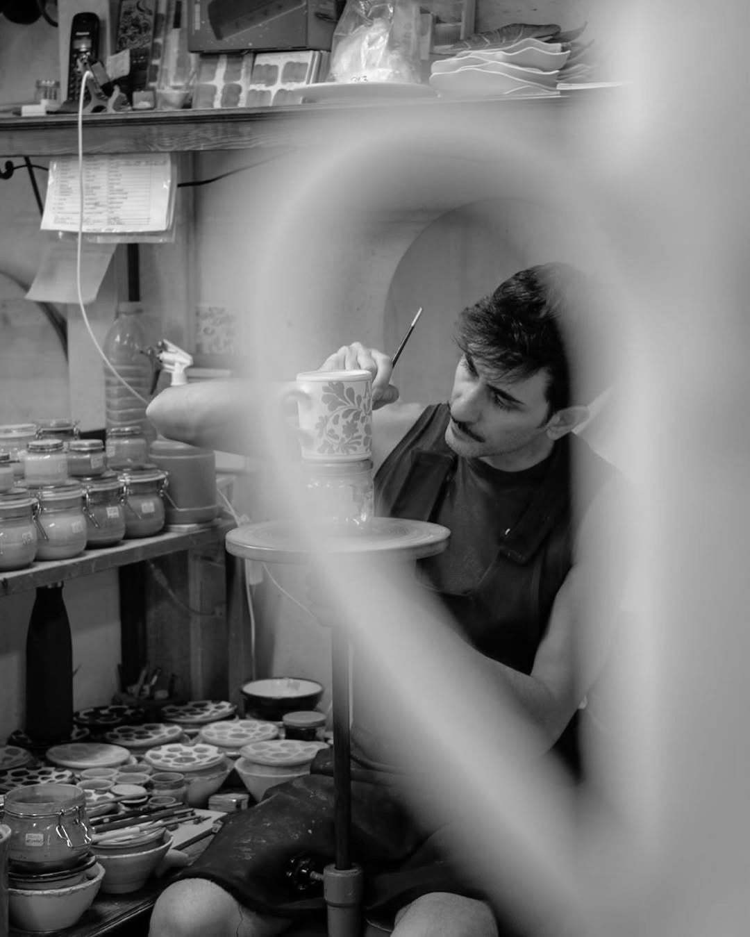 Chaque pièce de la collection est peinte à la main dans un petit atelier de la côte Amalfitaine, qui partage avec nous l'amour du détail et une véritable exigence dans l'exécution. C'est lui qui nous accompagne depuis la création de Dimanche.
